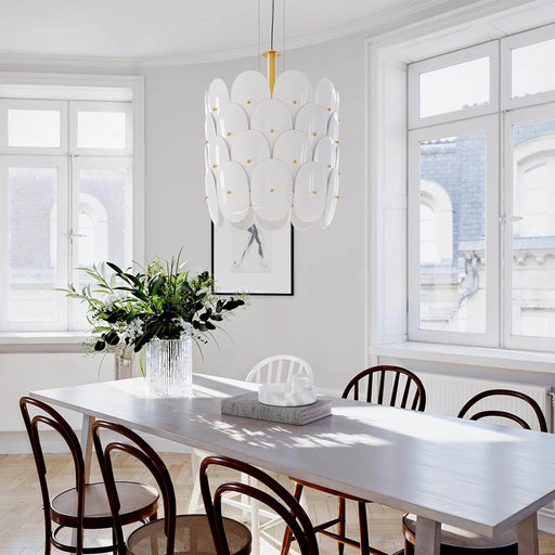 By RydénsMia Lagermanin muotoilema Omlott riippuvalaisin yhdistää ajattoman muotokielen ja harkitut yksityiskohdat. Kiiltävä valkoinen lasikupu ja messinkis...