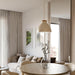 Vito riippuvalaisimessa yhdistyvät moderni skandinaavisuus ja japandi-henkinen minimalismi. Valaisimen beigen väriseen metallikupuun tuo sopivasti lämpöä kaunis puinen yksityiskohta.